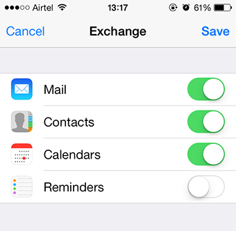 Choose the data to be synchronized - Mail, Contacts, Calendars and/or Reminders. Only the selected options will be synchronized with the Server.