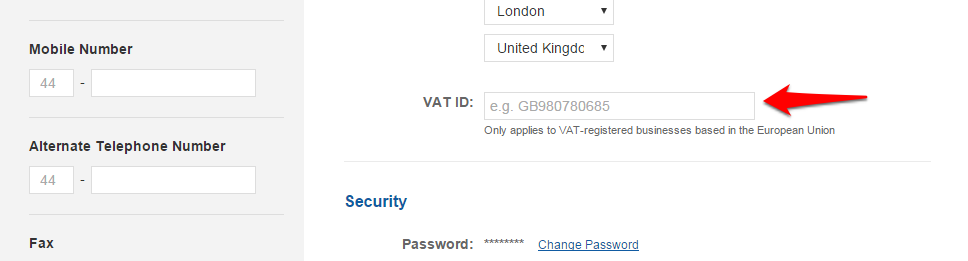 You can provide your VAT ID at the time of signing up for a Customer account. If you did not add it at the time of signing up, you can provide it from your Control Panel by clicking the icon at the top right corner of the page and then clicking on Manage Profile. You can then enter your VAT ID in the provided field.